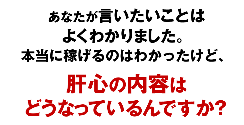 しかし、「あなたを本気で稼がせたいんです!」や「あなたを幸せにしたいんです」とか